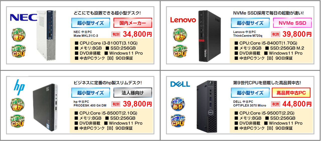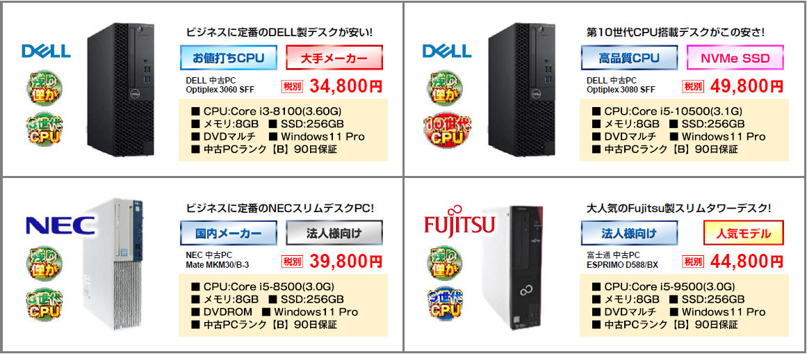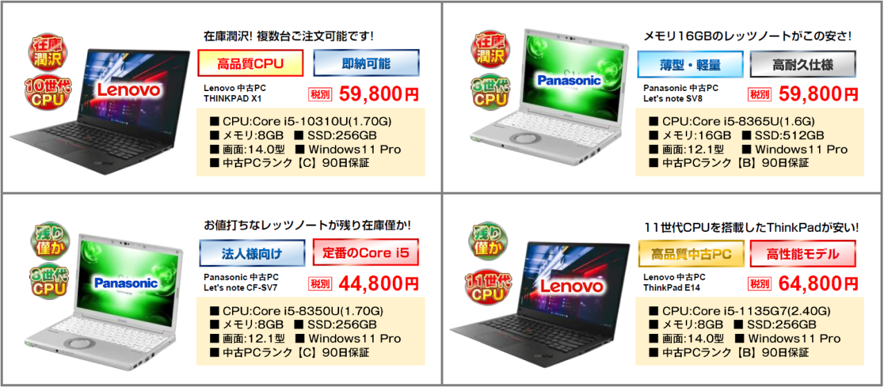 リユースカテゴリーから探す(現状在庫はCPU/OSのロゴをクリック頂ければ確認頂けます)
